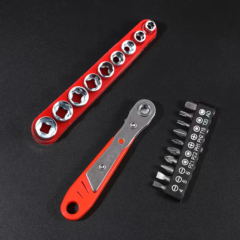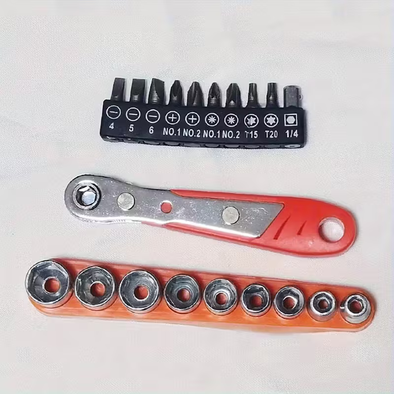 Juego de 21 piezas de llave de impacto con 10 brocas de destornillador y 9 sockets, kit de herramienta manual multifuncional con barra de extensión, llave reversible, acero de cromo vanadio duradero, operación manual, para espacios reducidos