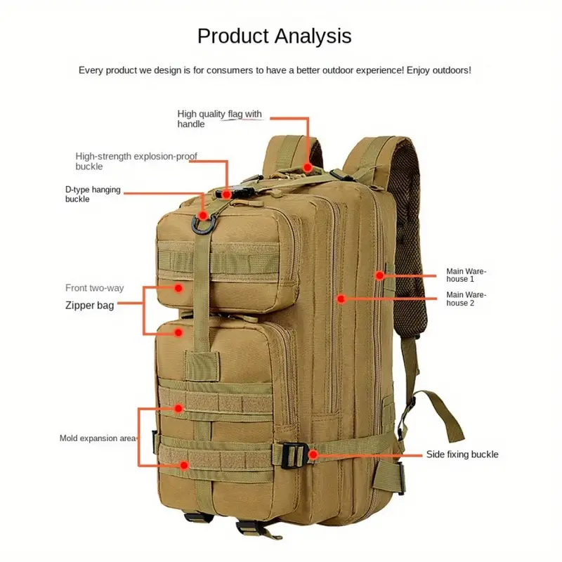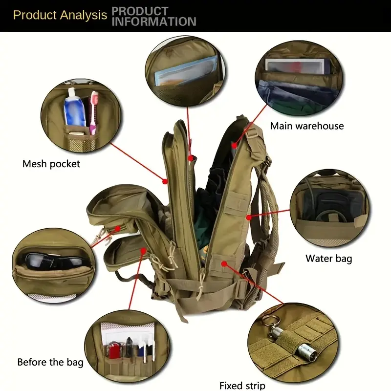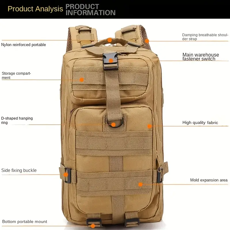 Bolsa Deportiva Informal, Mochila Táctica Portátil Para Acampar Al Aire Libre, Senderismo Y Caza, 1 Ud.
